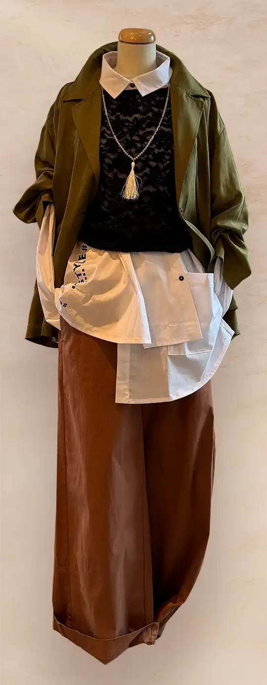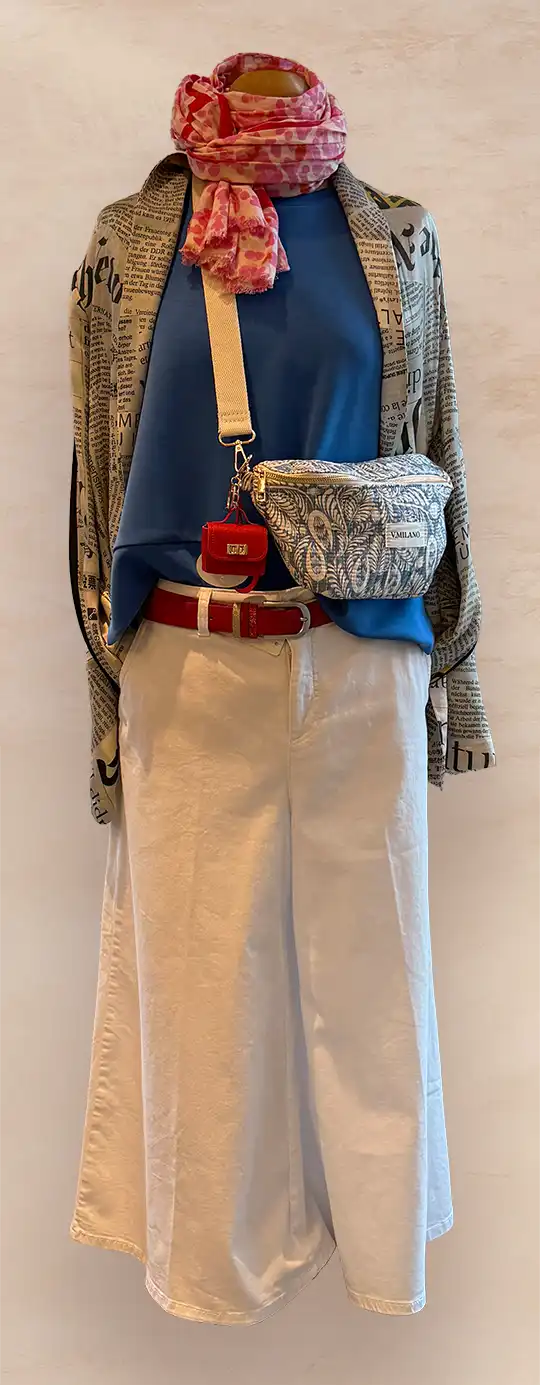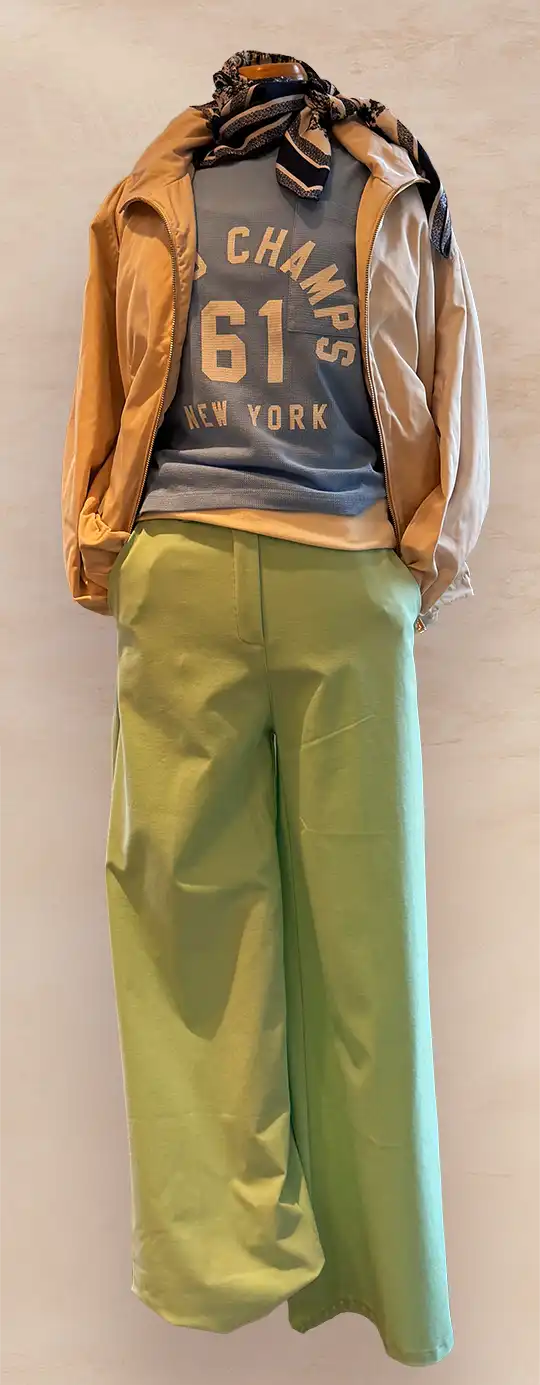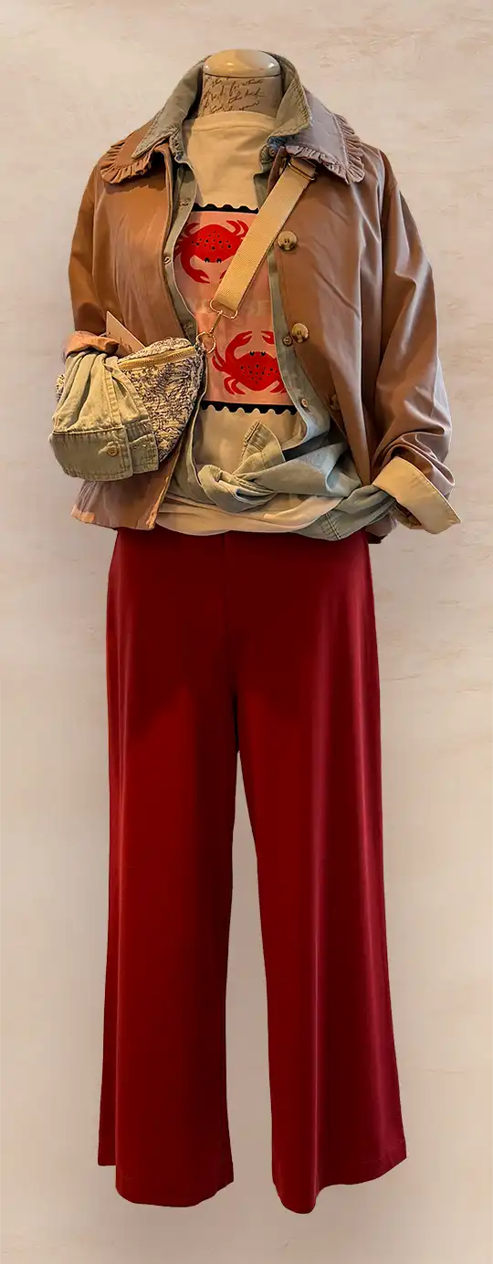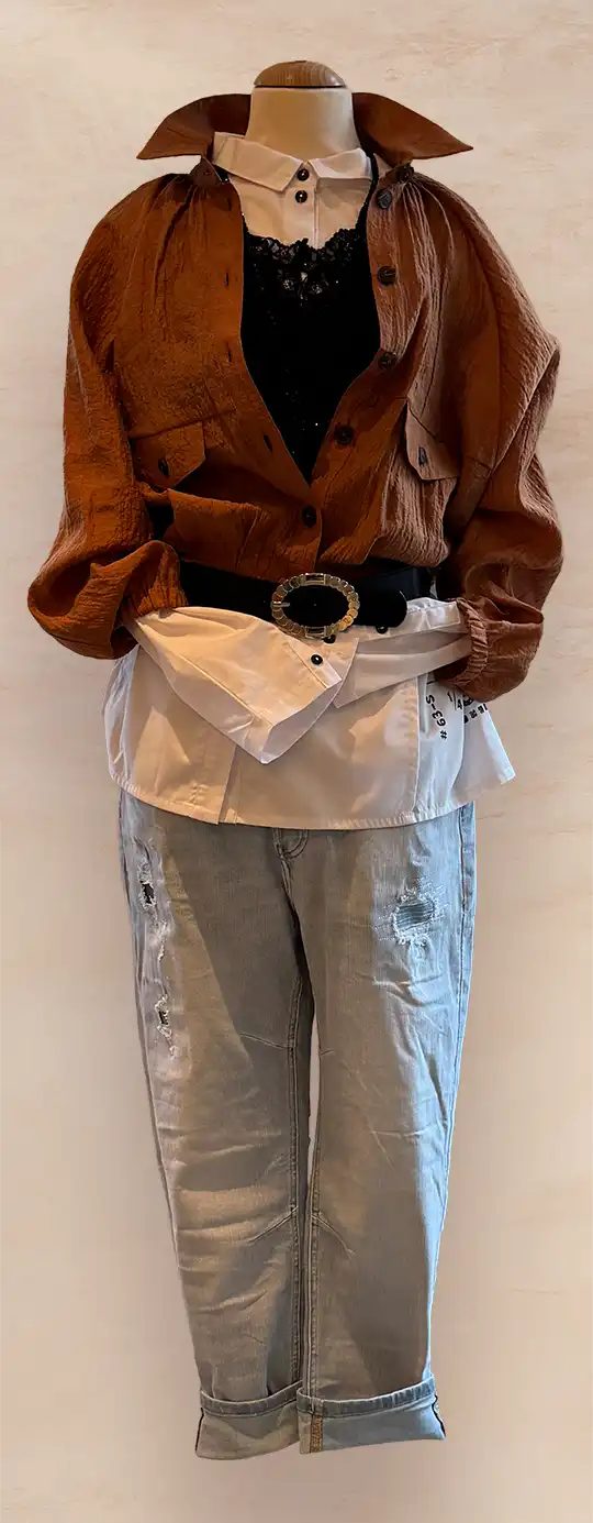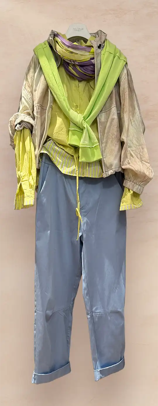 In Sachen Oberteile lautet das Motto Volumen und Komfort. Blusen-Shirts-Sweater werden mit Volumen getragen. Weite Schnitte, fließende Stoffe und spannende Details sorgen für eine moderne Silhouette und ein angenehmes Tragegefühl. Insgesamt steht die Saison für Individualität, Kombinationsfreude und einen entspannten, aber stilvollen Auftritt – Mode, die Spaß macht und Raum für Persönlichkeit lässt.