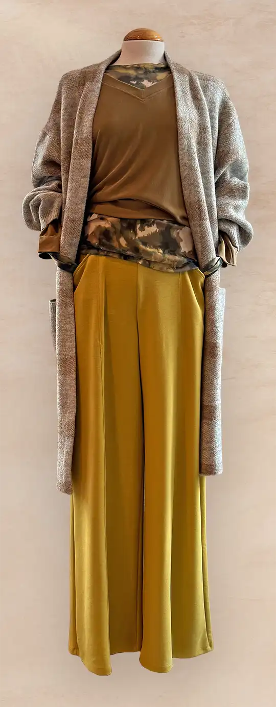 Mit der neuen Saison zieht eine sanfte Eleganz ein – Farben wie goldenes Karamell, zartes Moosgrün und pudriges Taupe umhüllen uns wie ein warmer Sonnenstrahl an kühlen Tagen. Zarte Eisblau- und Rosétöne bringen einen Hauch von Wintermagie in die Garderobe.